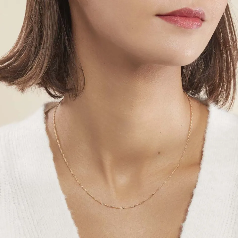 Collier Or Jaune 375/1000 Maille Singapour 1.2mm 45 Cm