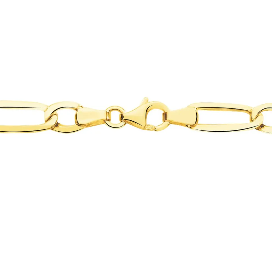 Collier Or Jaune 375/1000 Maille Alternee 1/1 Largeur 5.4mm 50cm