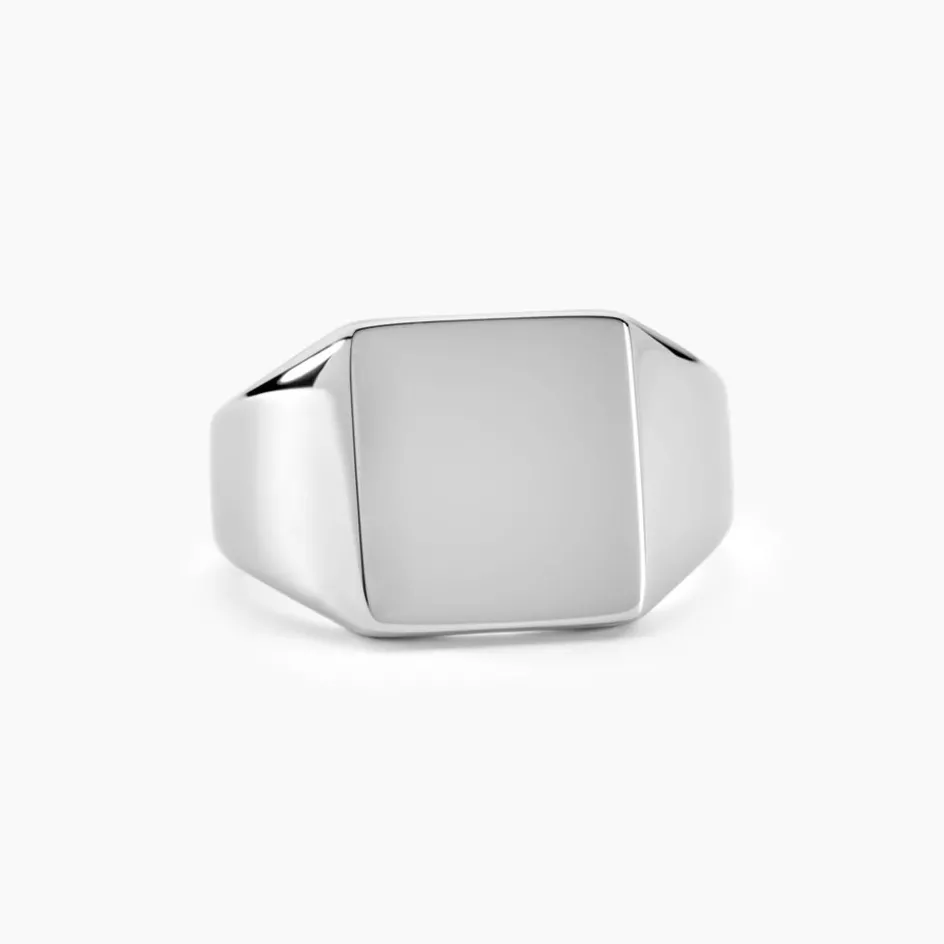 Chevaliere Acier Inoxydable Blanc Plateau Carre Lisse