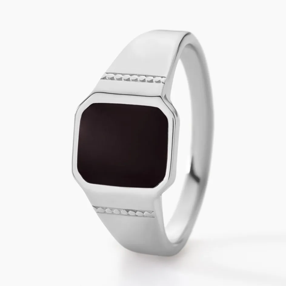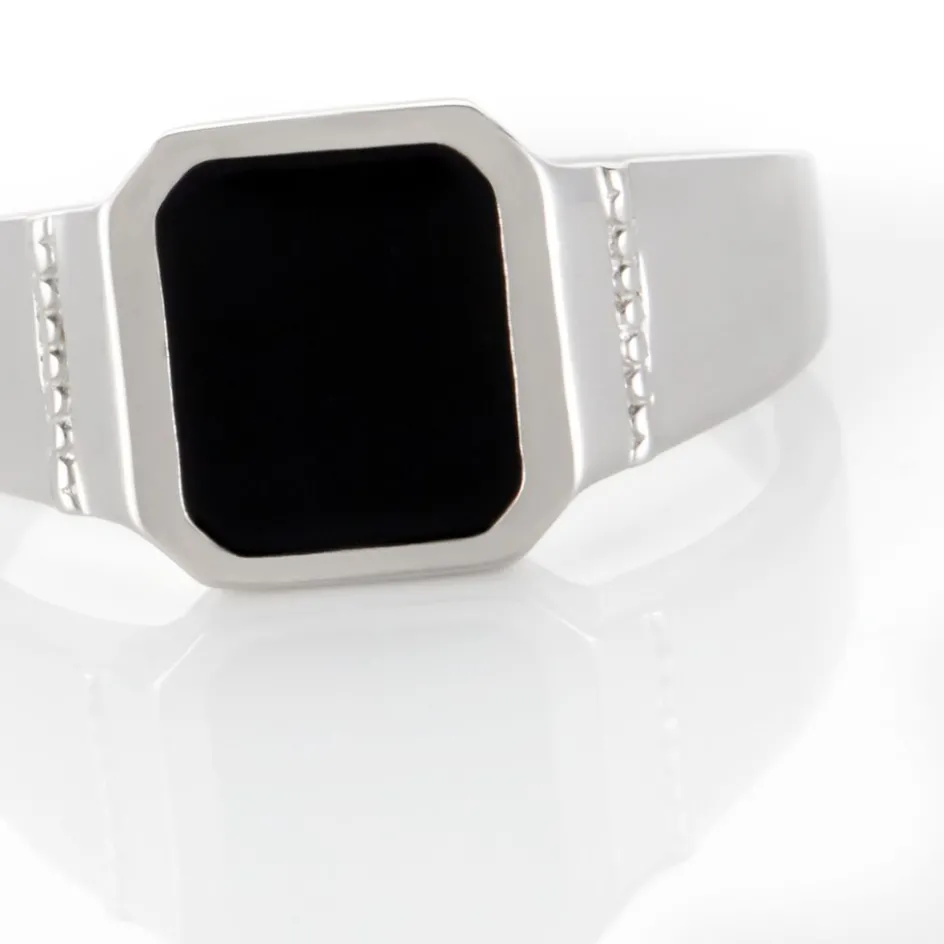Chevalière Argent Blanc 925/1000 Carre Email Noir