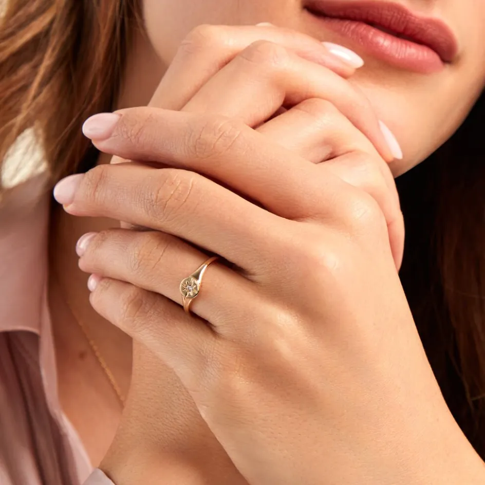 Chevaliere Or Jaune 375/1000 Etoile Oxyde De Zirconium Micro Serti