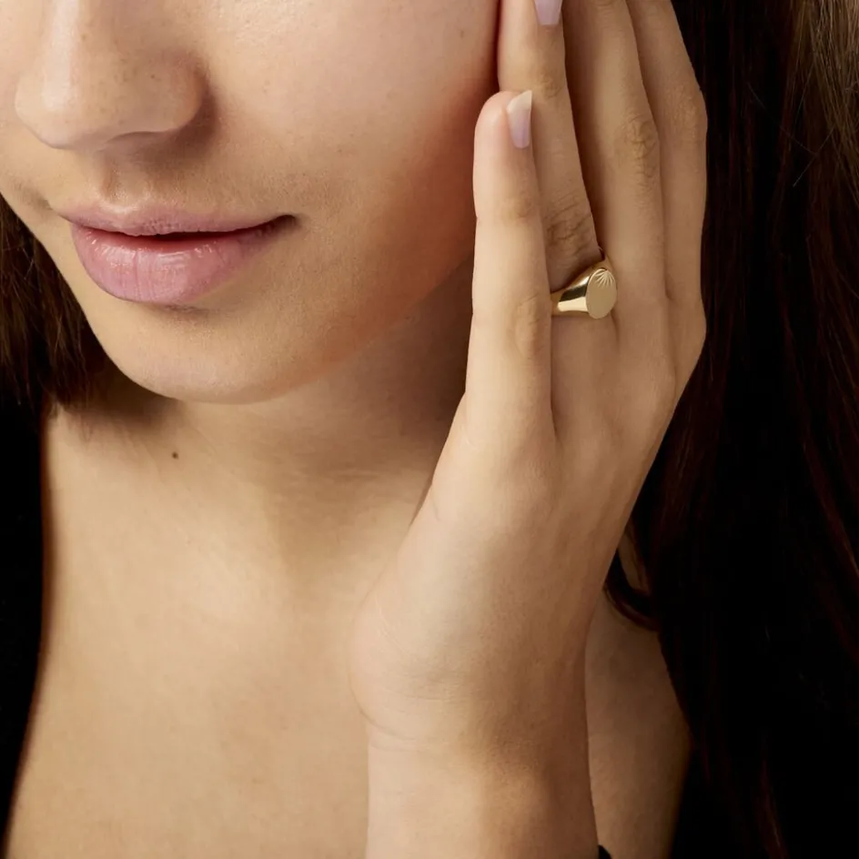 Chevelière Or Jaune 375/1000 Plateau Ovale Lisse Diamantée Soleil