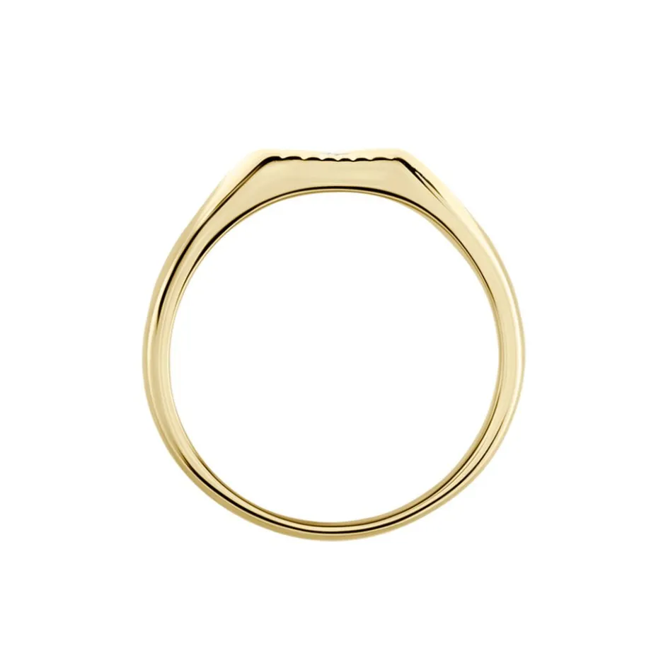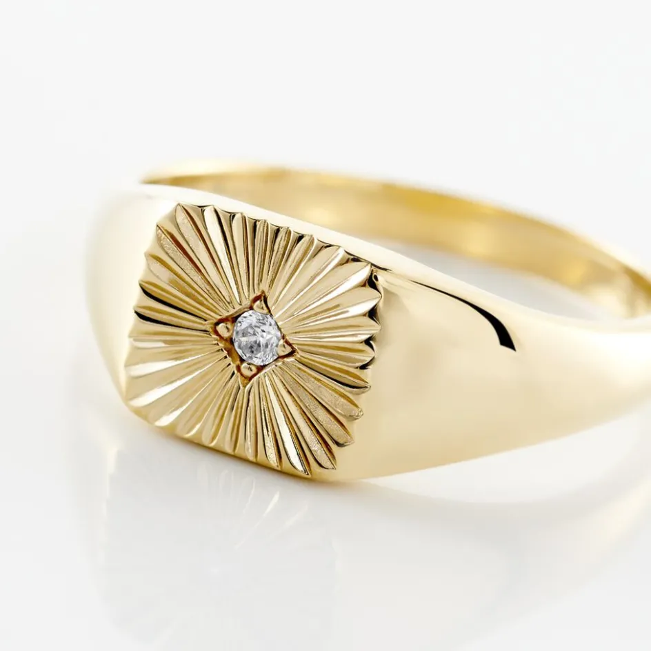 Chevaliere Plaque Or Jaune Plateau Carre Strie Oxyde De Zirconium Serti Clos