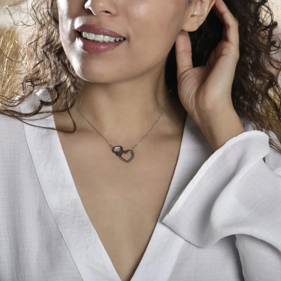 Collier Argent Blanc 925/1000 Motifs Double C艙urs Entrelaces Maille Forcat 42cm