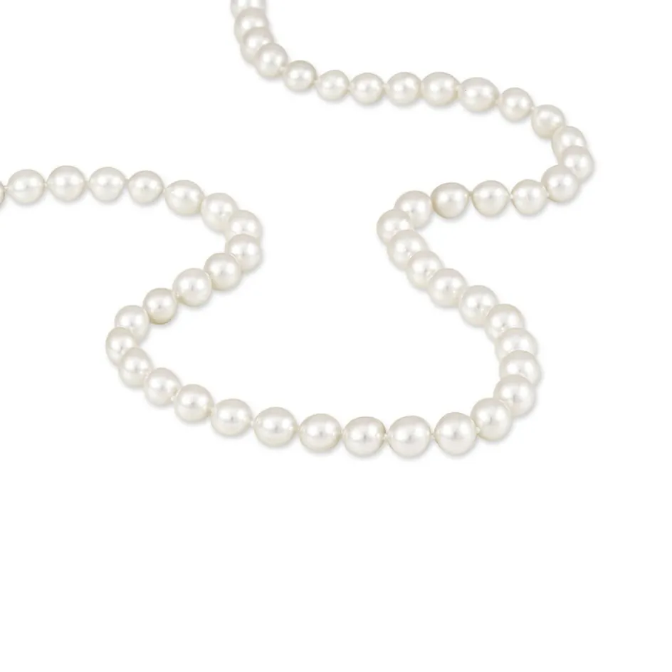 Collier Or Jaune 375/1000 Perle De Culture Akoya 7/7.5mm Ronde Blanche 45cm