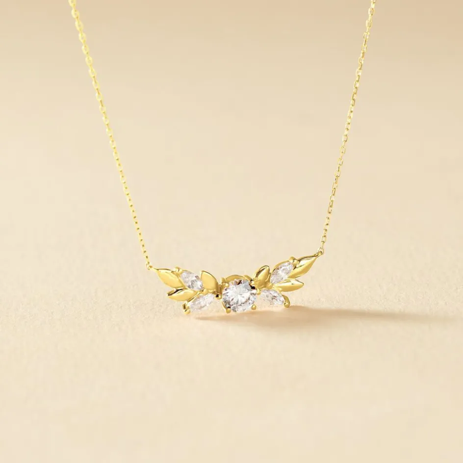Collier Or Jaune 375/1000 Oxyde De Zirconium Central Forme Epi De Blé Oxydes De Zirconium 42cm