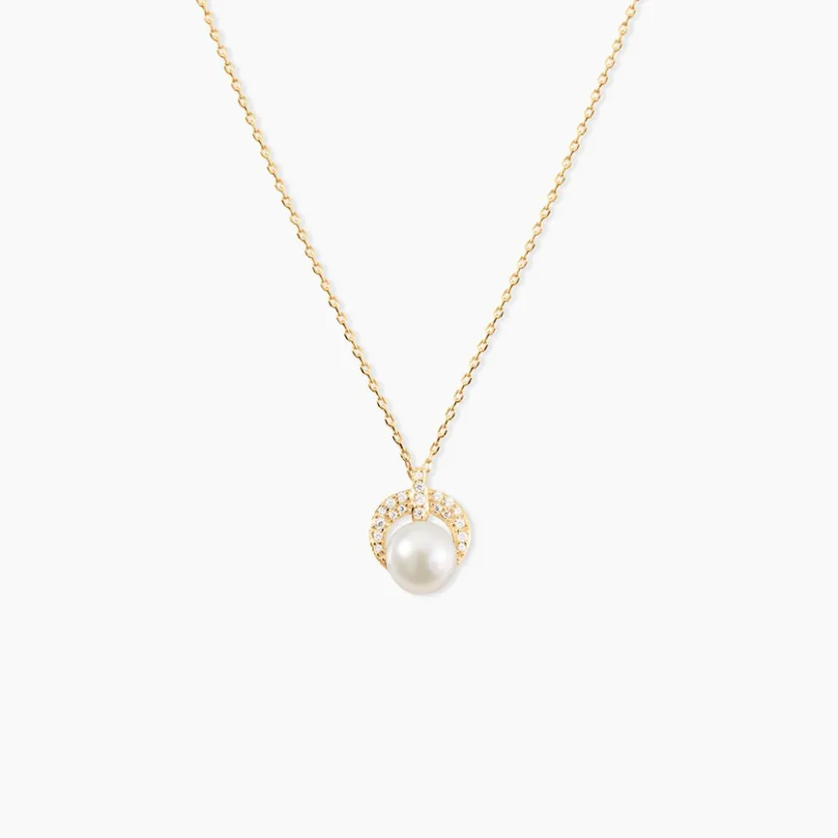 Collier Or Jaune 375/1000 Perle De Culture 6mm Demi Cercle Oxydes De Zirconium 43cm