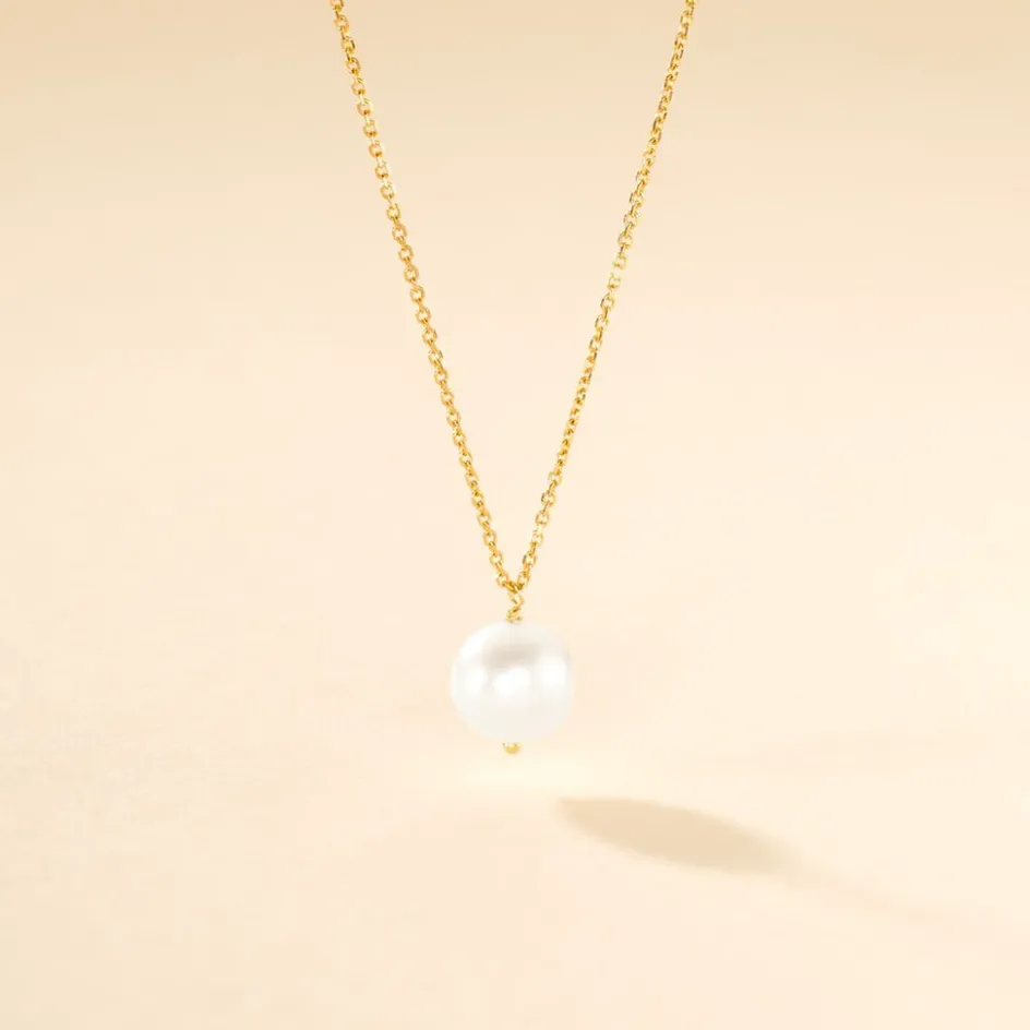 Collier Or Jaune 375/1000 1 Perle De Culture Ronde Blanche Percee 7.5/8mm Maille Forcat 40+2cm