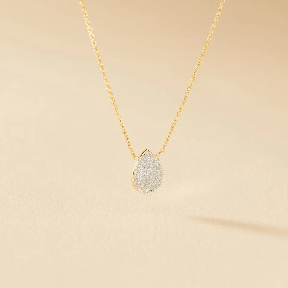 Collier Or Jaune 375/1000 Motif Goutte Glitter Silver Maille Jaseron 42cm