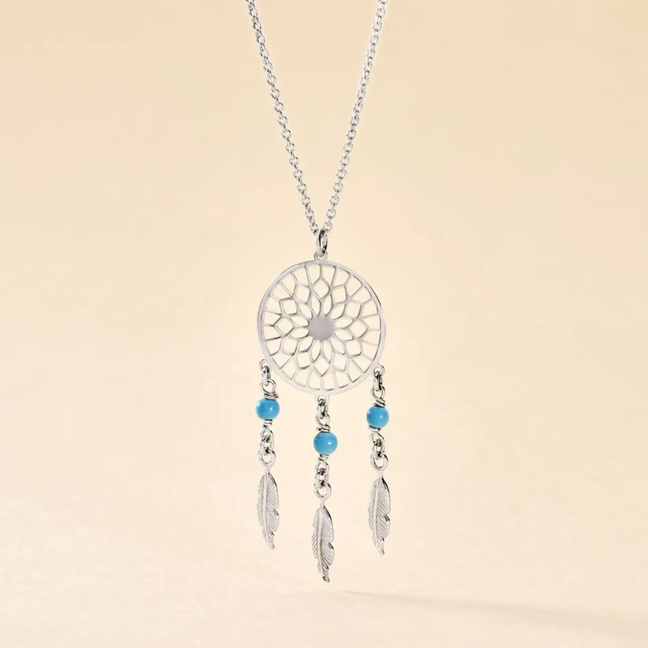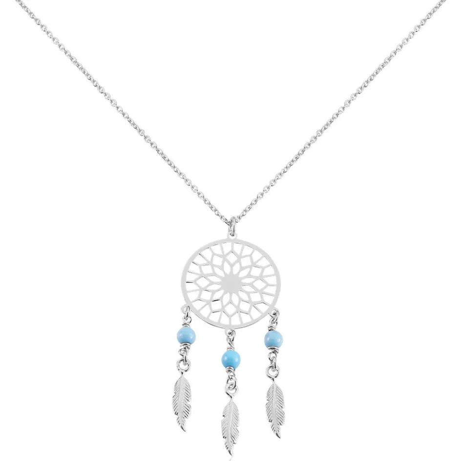 Collier Argent Blanc 925/1000 Attrape Reves Resines De Turquoise Bleues Maille Forcat 45cm