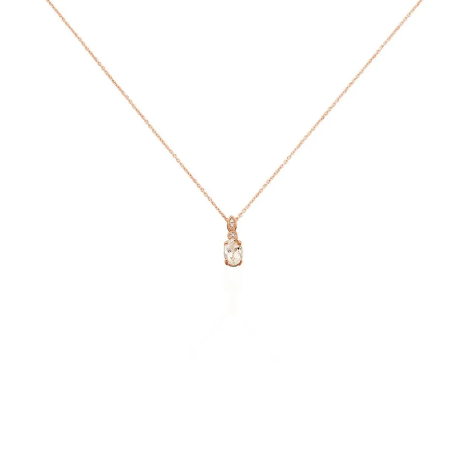 Collier Or Rose 375/1000 Morganite Avec Oxydes De Zirconium 42cm