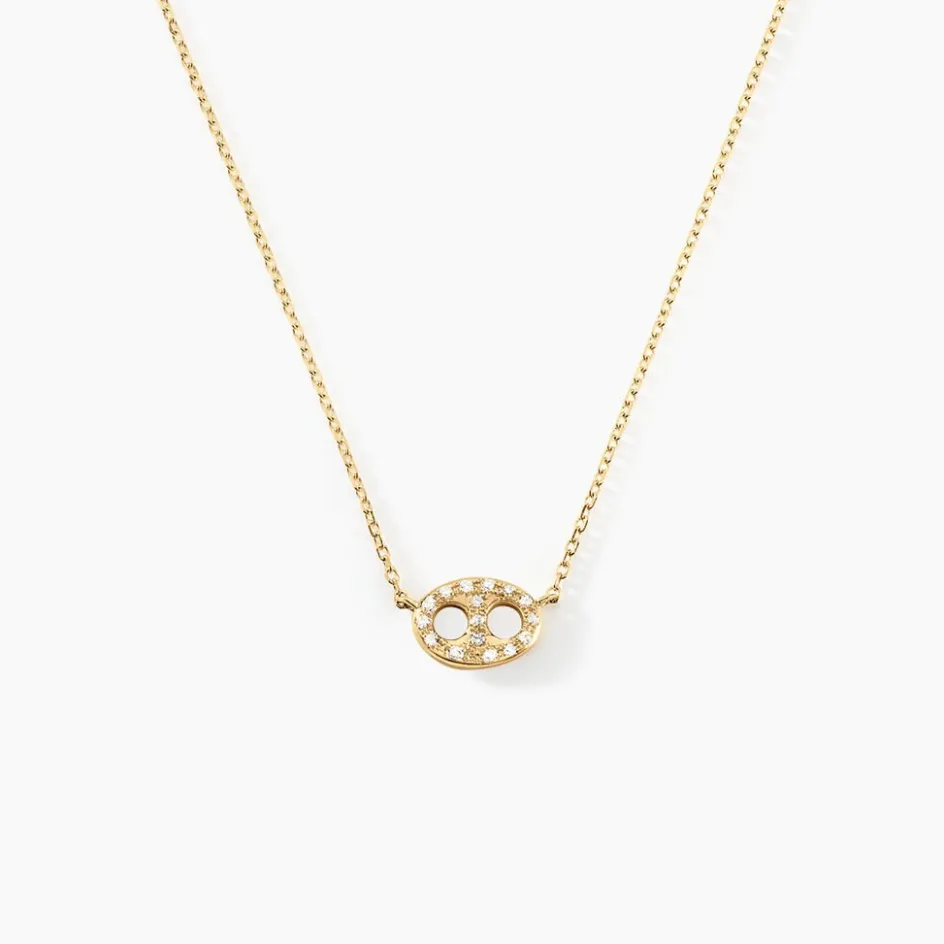 Collier Or Jaune 375/1000 Grain De Cafe Pavage Diamants Maille Forcat 40+2cm