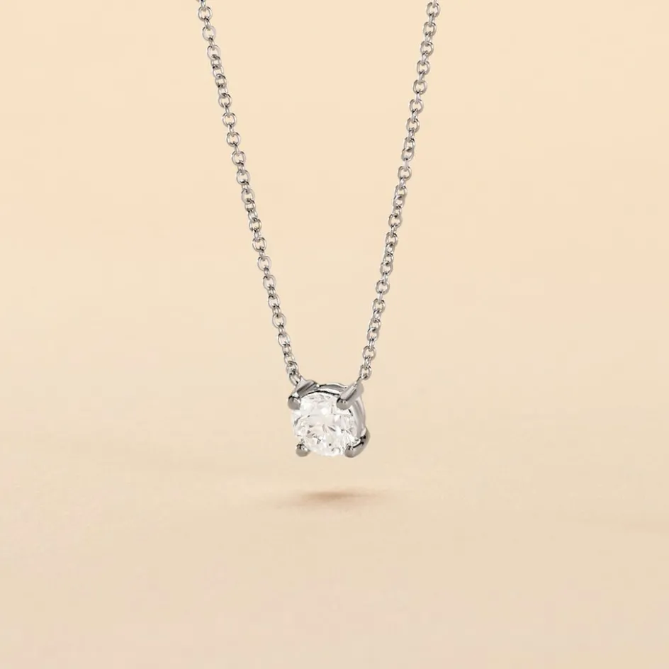 Collier Or Blanc 375/1000 Solitaire Diamant 0.40cts 42cm