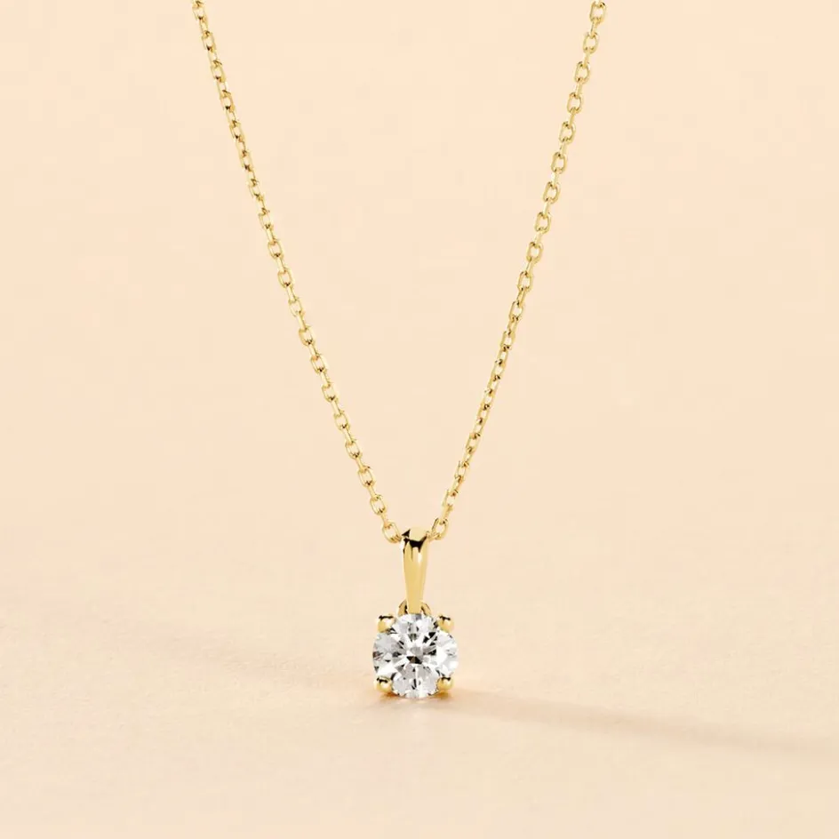 Collier Or Jaune 750/1000 Solitaire Diamant Synthetique 0.30cts 45cm