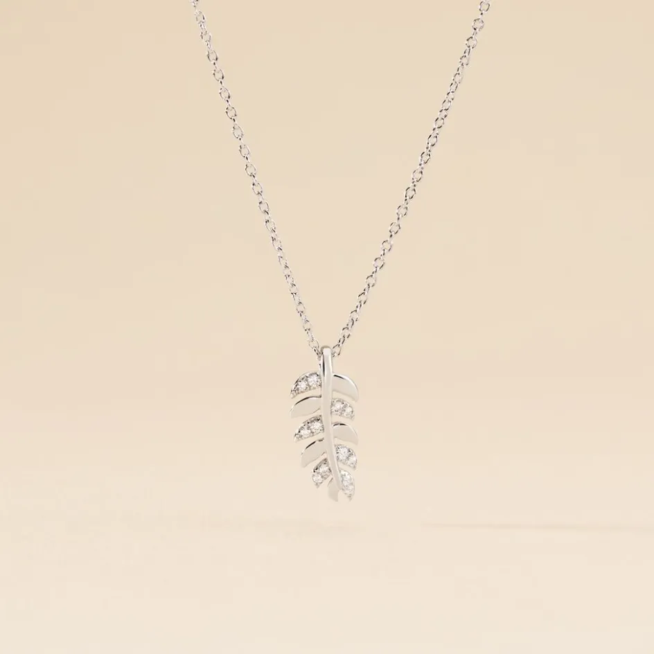 Collier Argent 925/1000 jade Feuille Micro Serti Oxydes De Zirconium Blancs Maille Forçat 38cm