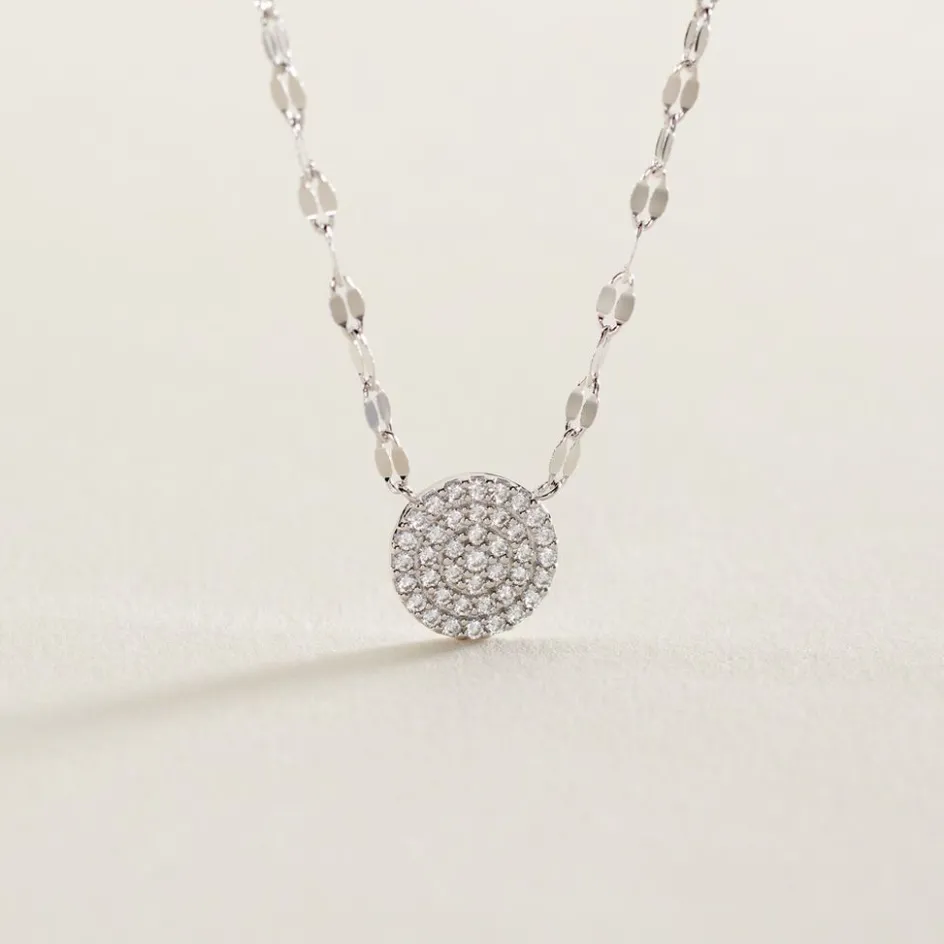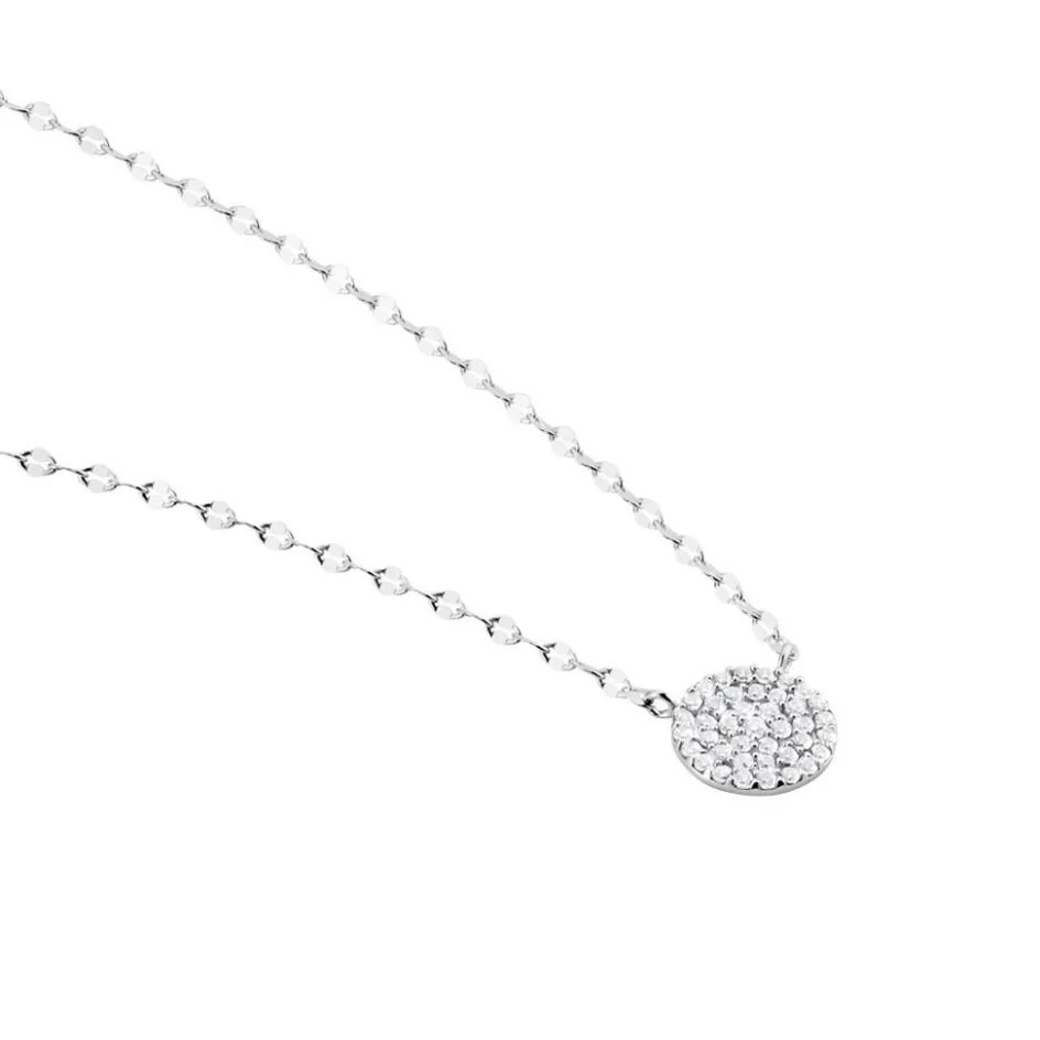 Collier Argent Blanc 925/1000 Pastille Pavage Oxydes De Zirconium Maille Lumina 45cm
