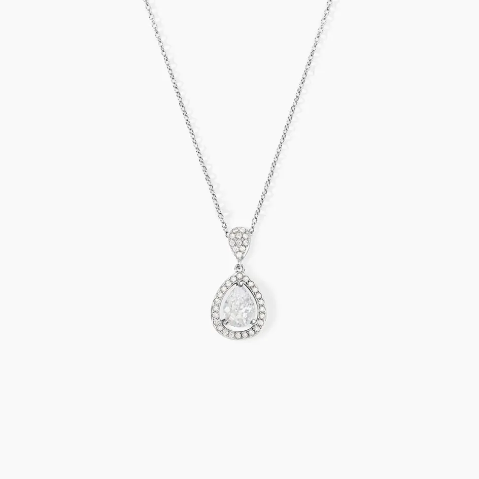 Collier Argent Blanc 925/1000 Oxyde De Zirconium Goutte Entourage Maille Forcat 42+3cm
