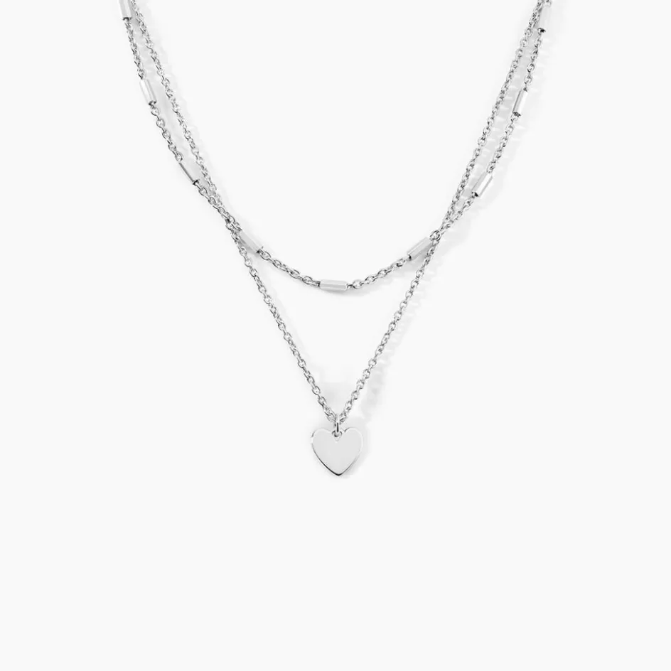 Collier Argent Blanc 925/1000 C艙ur Double Mailles Forcat Et Fantaisie 45cm