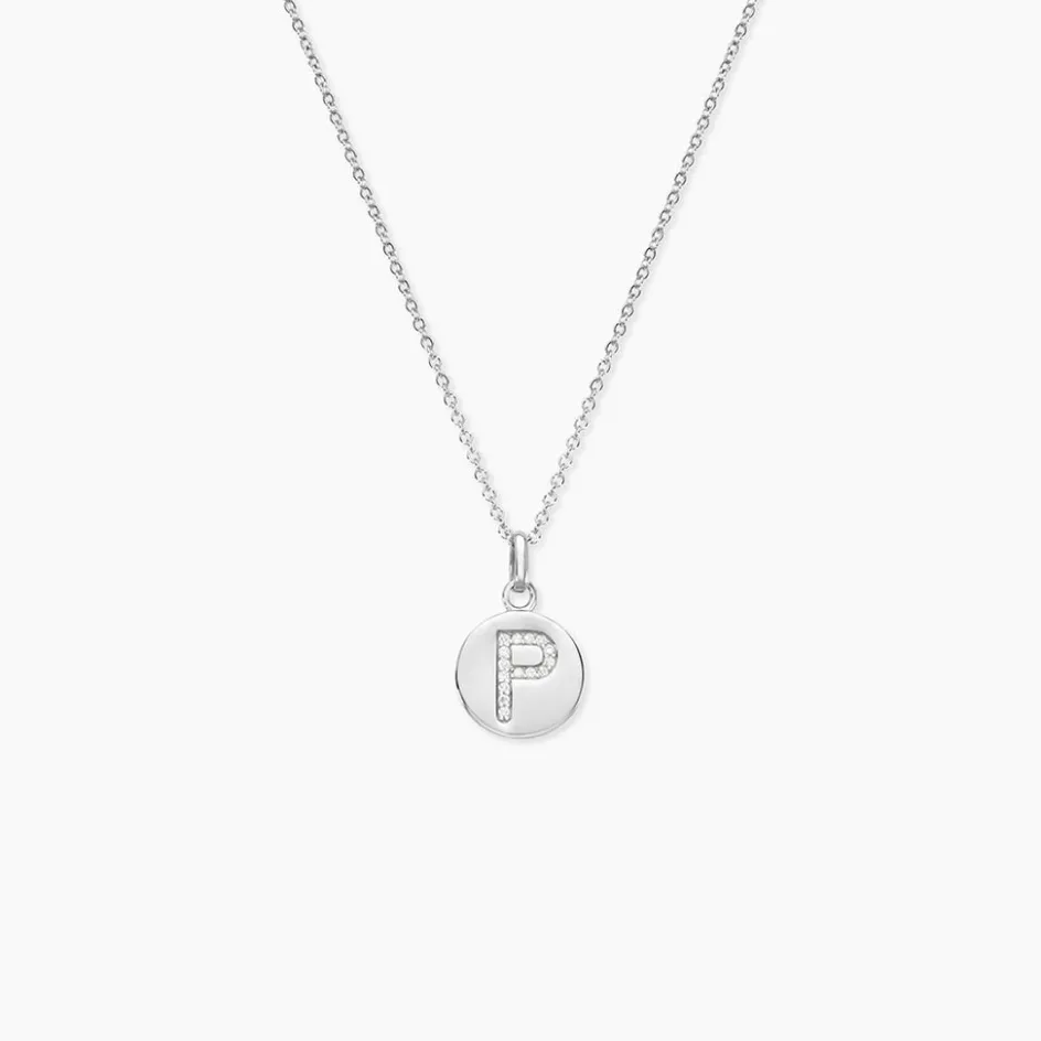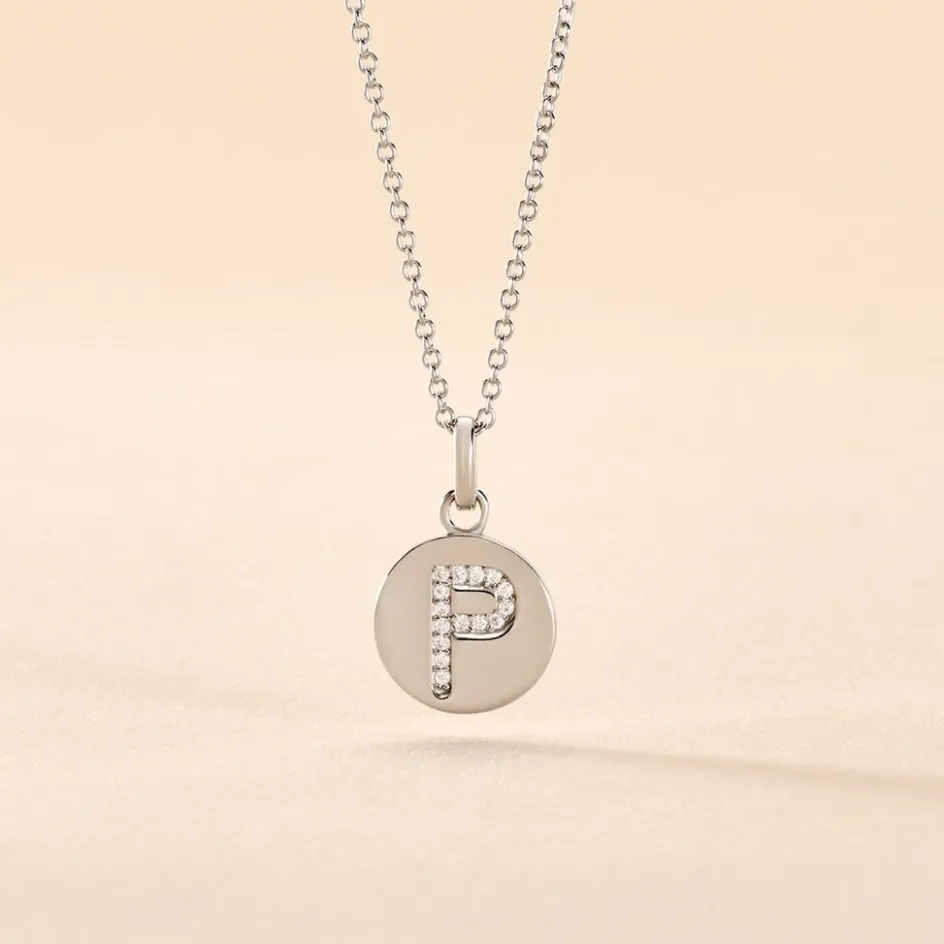 Collier Argent 925/1000 eugenien Pendentif Lettre P Pavage Oxydes De Zirconium Maille Forcat 45cm