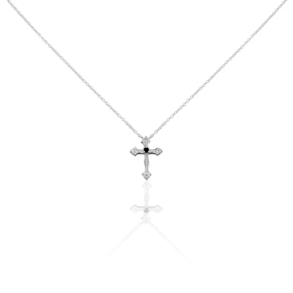 Collier Argent 925/1000 florian Croix Gothique Micro-setting Oxydes De Zirconium Maille Forçat 45cm