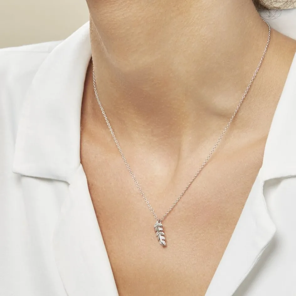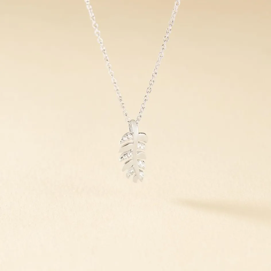 Collier Argent 925/1000 jade Forme Feuille Avec Oxyes De Zirconium 45cm