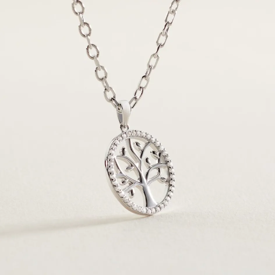 Collier Argent 925/1000 urcisse Arbre De Vie Micro Setting Oxydes De Zirconium Maille Jaseron 45cm