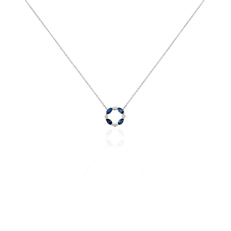 Collier Or Blanc 375/1000 Cercle Saphirs Et Diamants 42cm