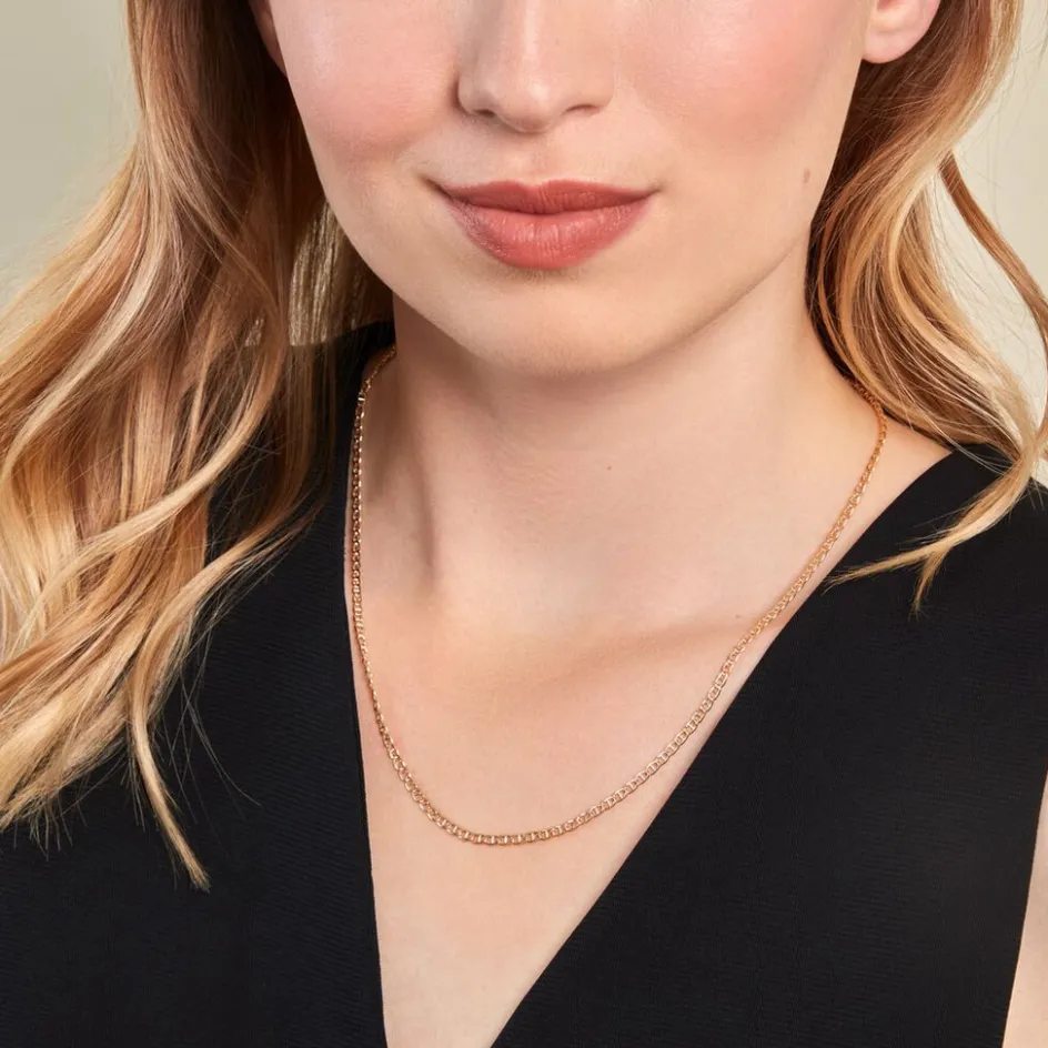 Collier Or Jaune 375/1000 Maille Marine Ovale Largeur 2.6mm 42cm