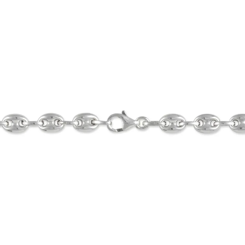 Collier Argent Blanc 925/1000 Maille Grain De Cafe Epaisseur 6mm 55cm