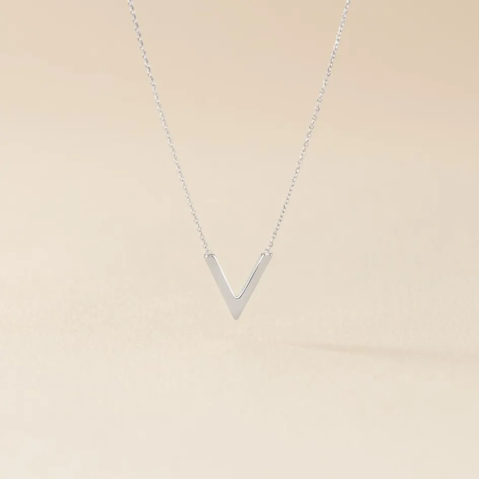 Collier Or Blanc 375/1000 Forme V Pm Maille Forcat 40+2cm