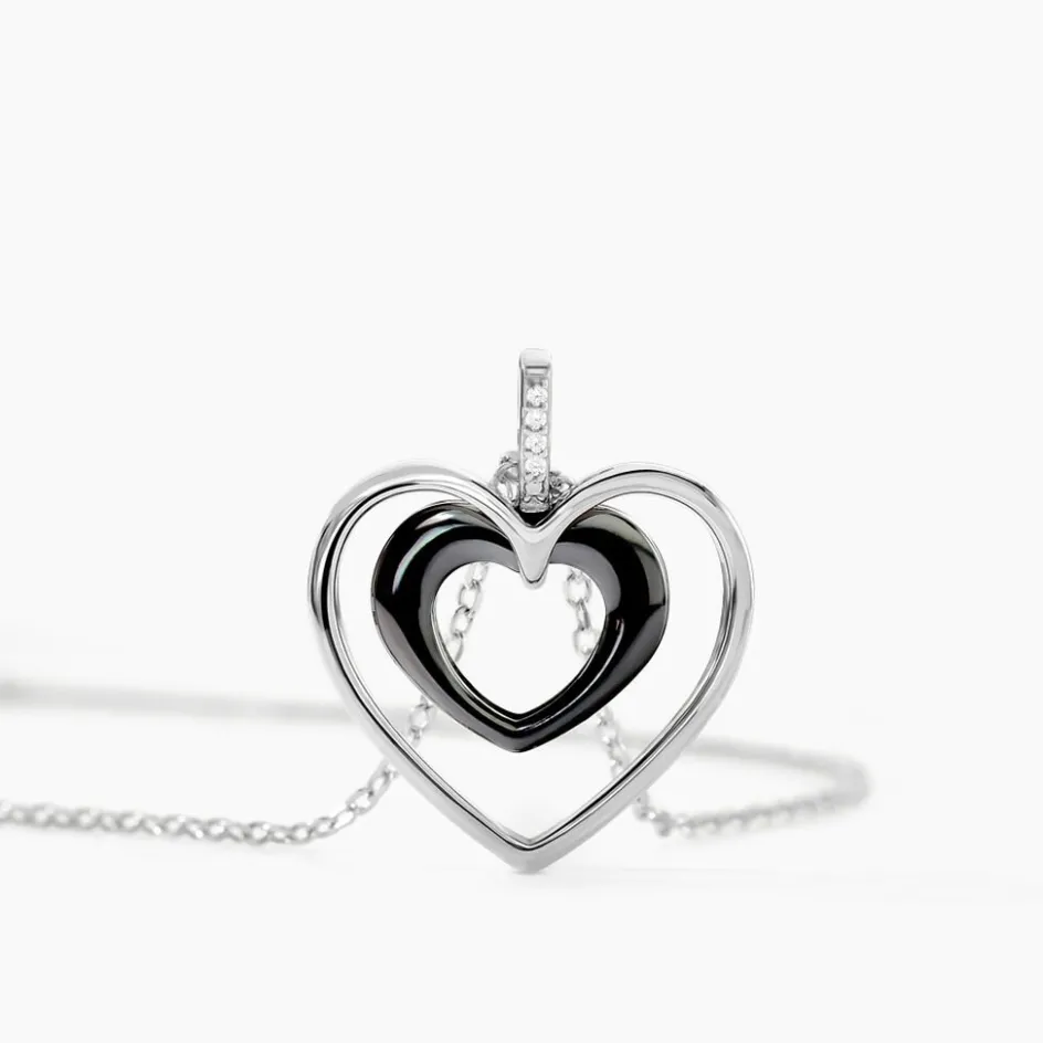 Collier Argent Blanc 925/1000 Coeur Ceramique Noire Et Coeur Argent Blanc 925/1000 Oxydes De Zirconium 45cm