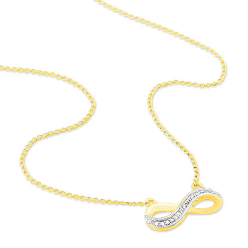 Collier Or Jaune 375/1000 Forme Infini Avec Pavage Diamants 42cm