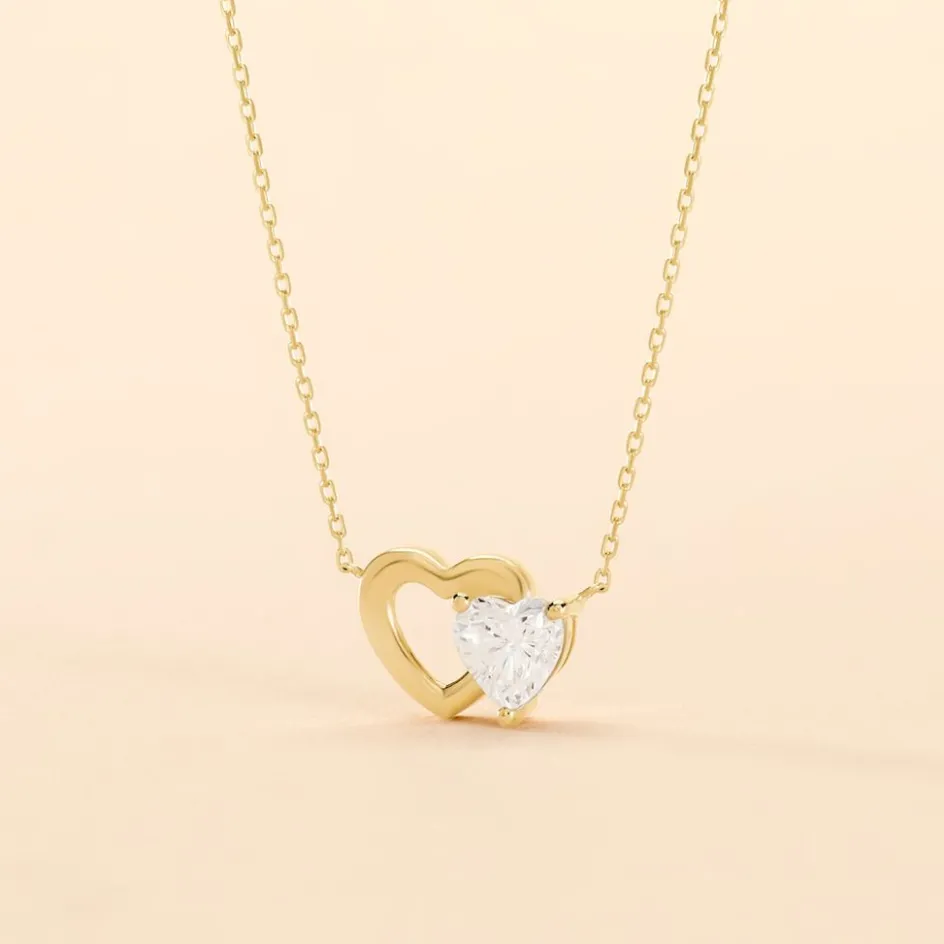 Collier Or Jaune 375/1000 Double C艙ur Maille Forçat Oxyde De Zirconium 38+4cm