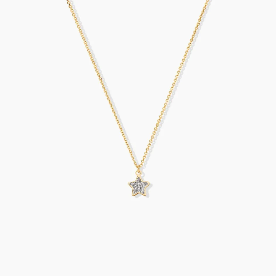 Collier Or Jaune 375/1000 Motif Etoile Glitter Silver Maille Jaseron 38cm