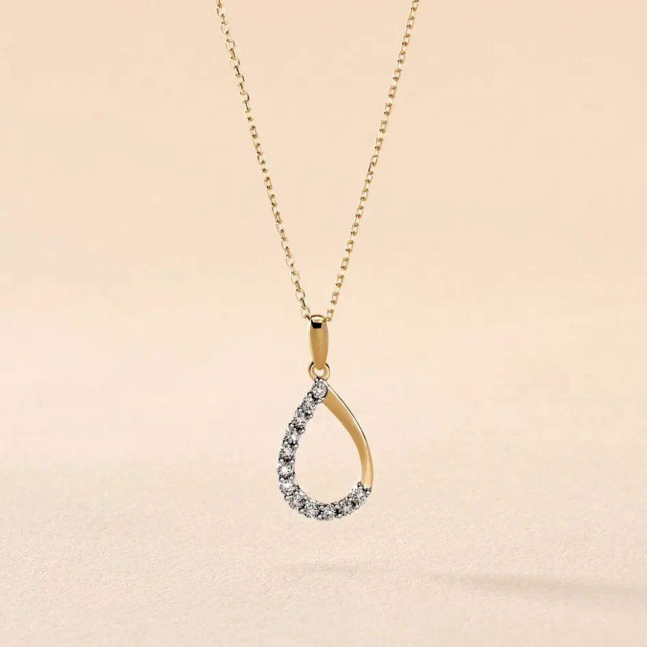 Collier Or Jaune 375/1000 Forme Goutte Diamants 42cm