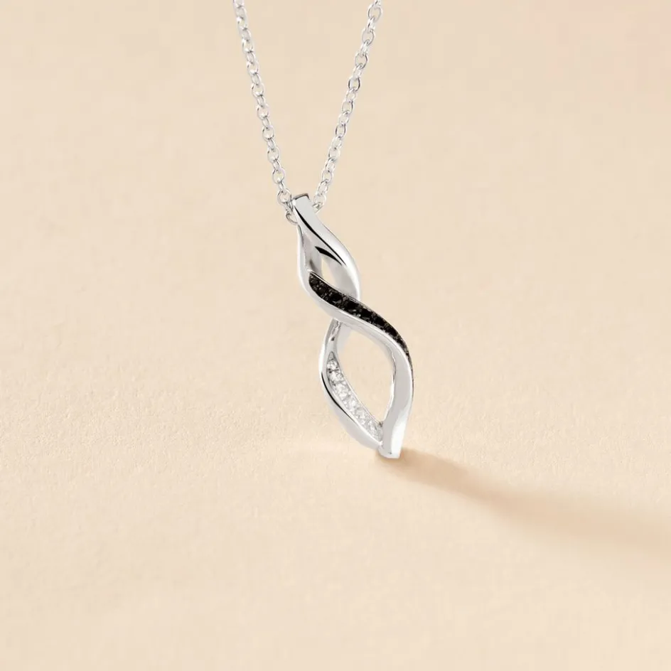 Collier Argent 925/1000 claudia Vagues Entrelacees Oxydes De Zirconium Noirs Et Blancs 45cm