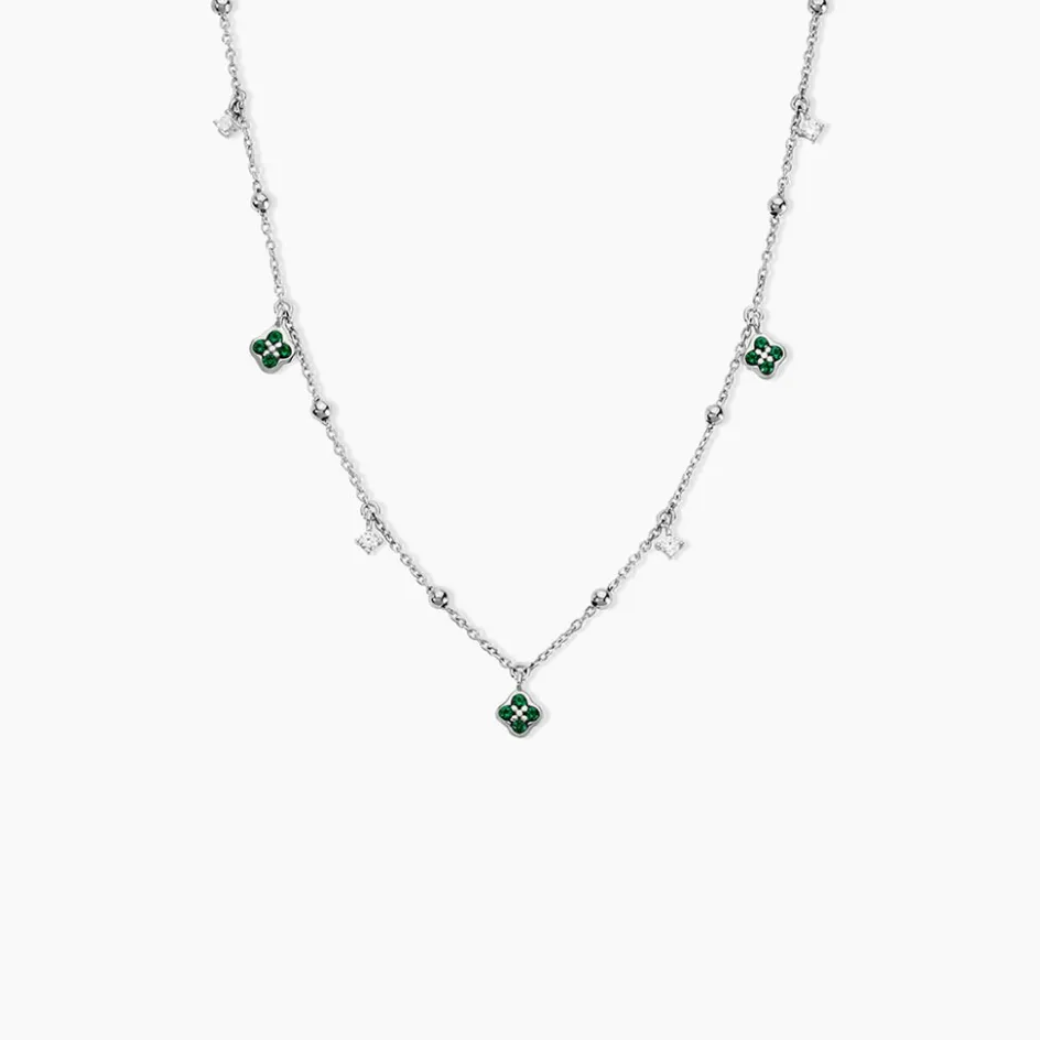 Collier Argent Blanc 925/1000 Pampilles Fleurs Pierres Vertes Et Oxydes De Zirconium Maille Forcat 42+3Cm