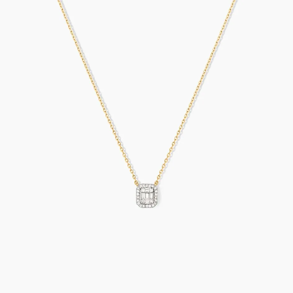 Collier Or Jaune 375/1000 Carree Diamants Baguettes 0,095Cts Maille Forcat 40+2Cm