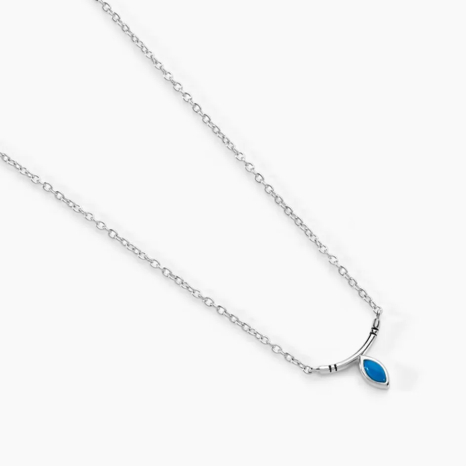 Collier Argent Blanc 925/1000 Goutte Turquoise Maille Jaseron 42+3cm