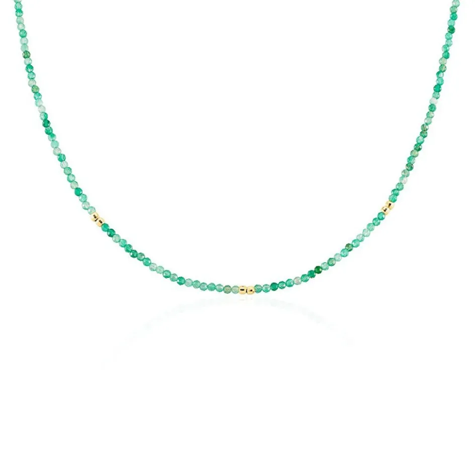 Collier Argent Jaune 925/1000 Agate Vertes Et Boules Argent Jaune 36+2cm