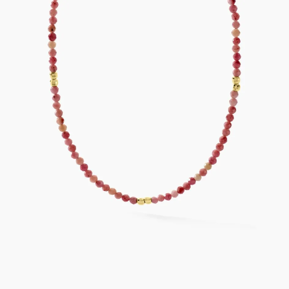 Collier Argent Jaune 925/1000 Rhodonite Roses Et Boules Argent Jaune 36+2cm