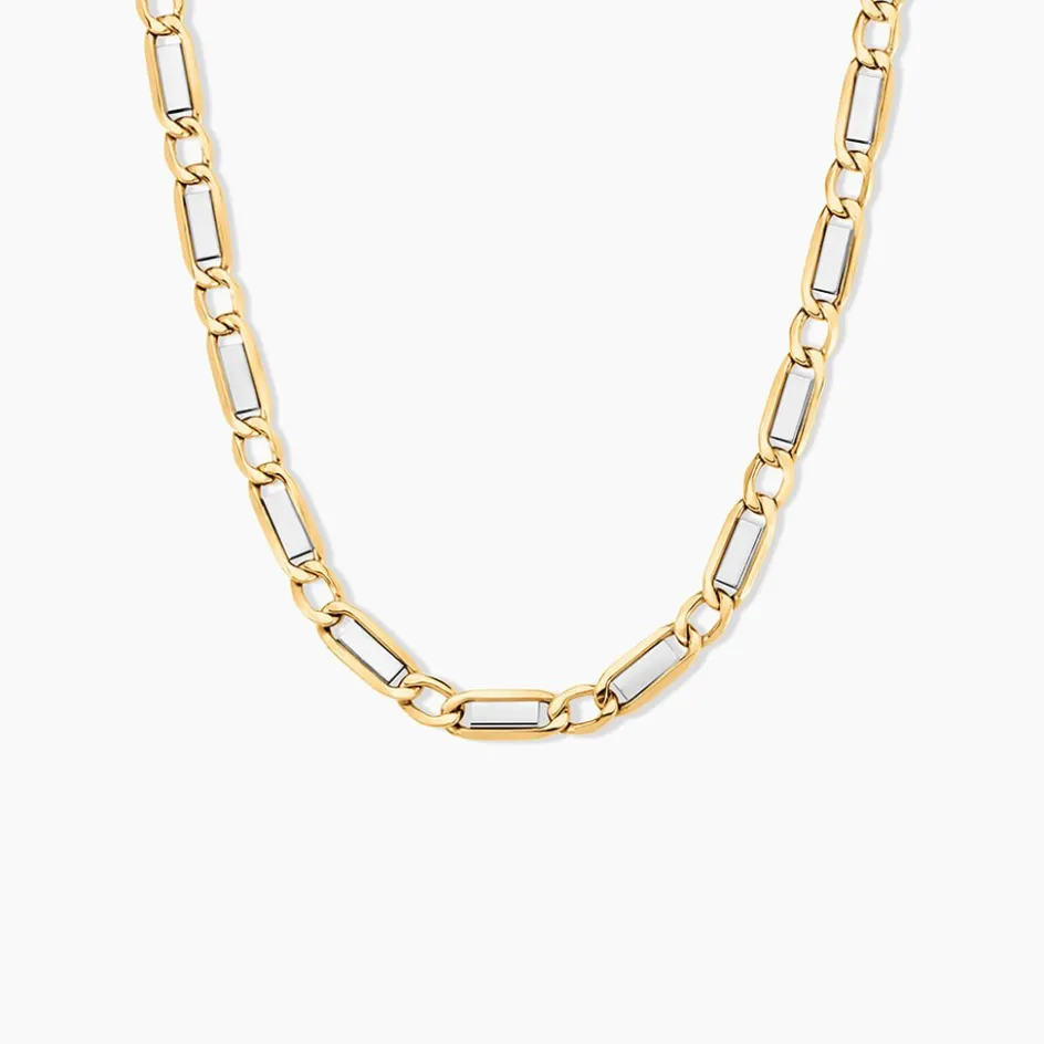 Collier Maille Or Bicolore 375/1000 Maille Plaquette Alternée 1/1 Largeur 4.7mm 55cm