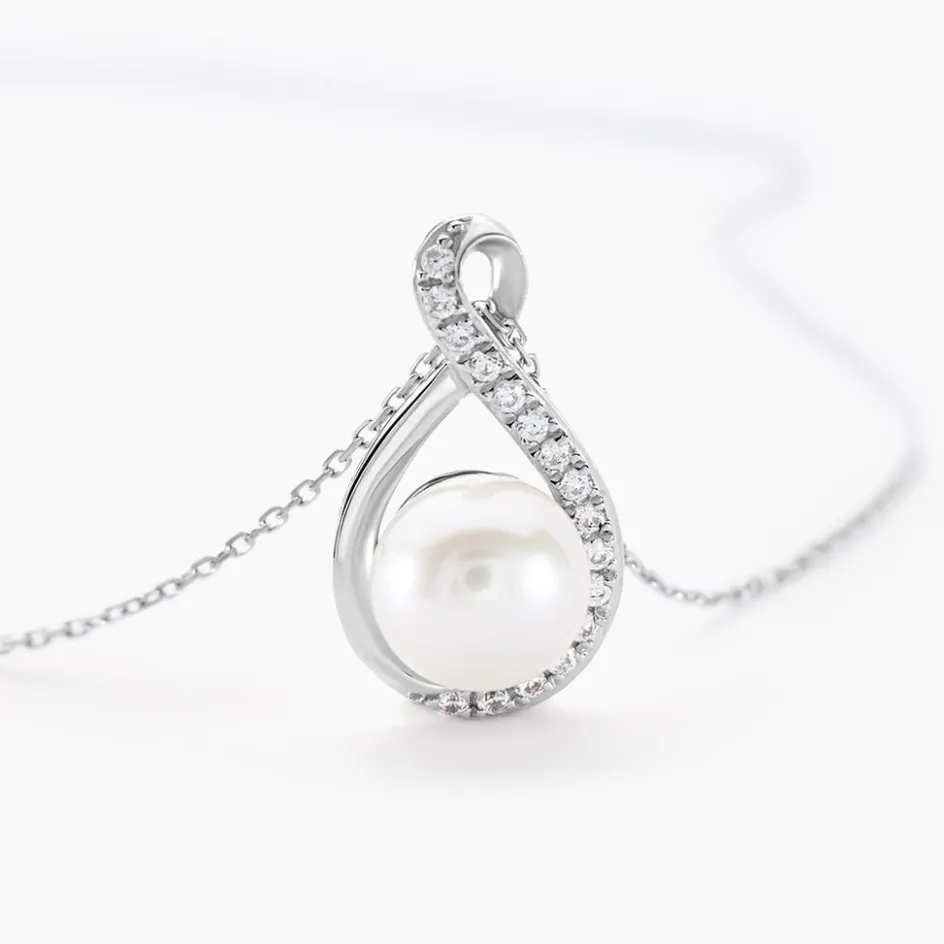 Collier Or Blanc 375/1000 Forme Goutte Perle De Culture 6-6.5mm Et Oxydes De Zirconium Maille Forçat 38+4cm