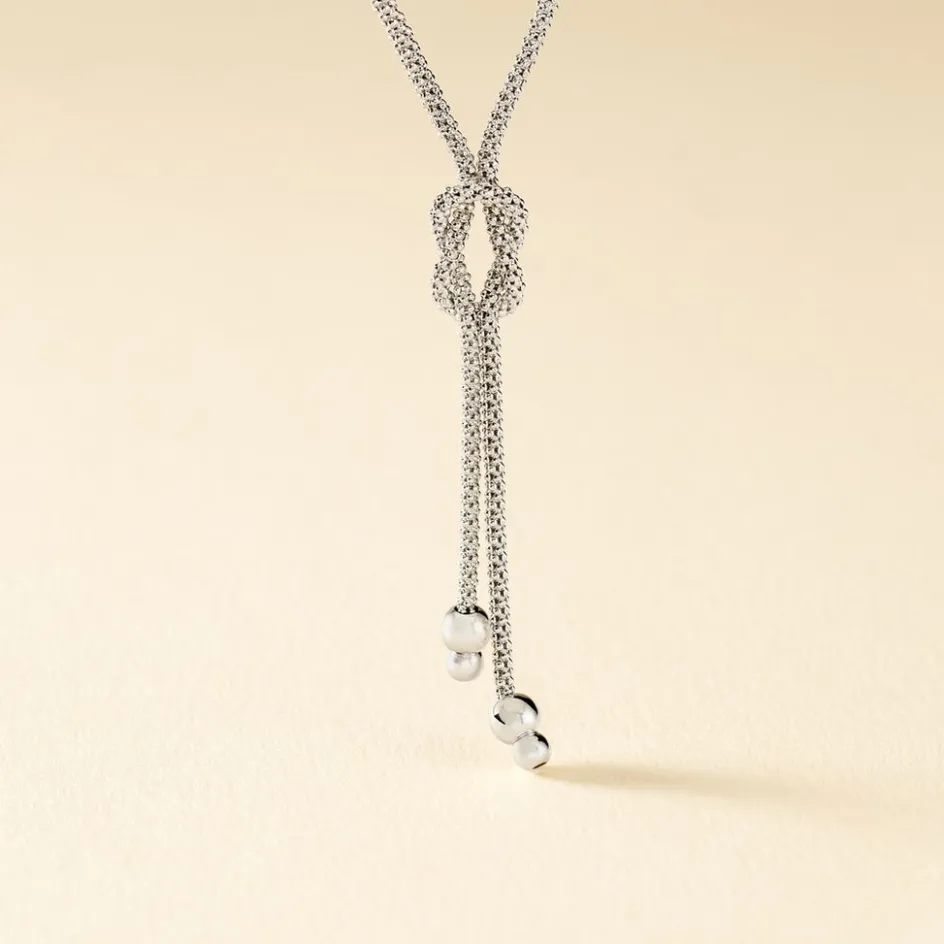 Collier Argent Blanc 925/1000 Forme Cravate Noeud Marin Maille Pop Corn 45cm