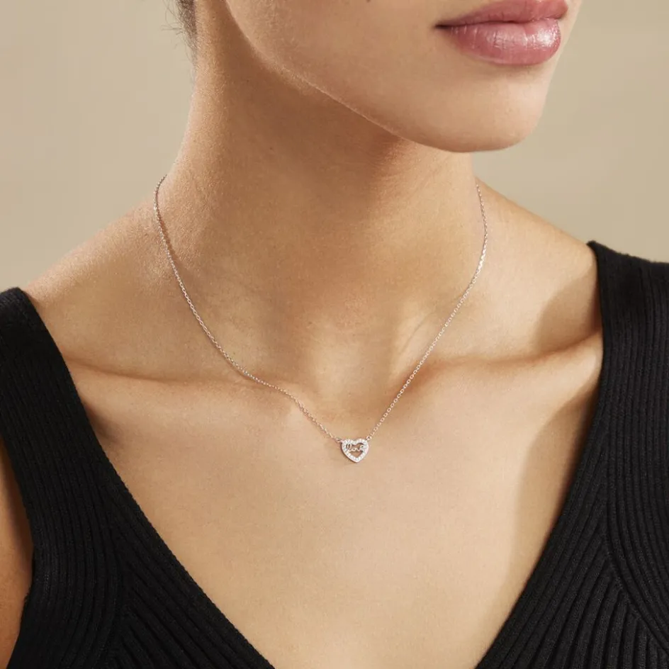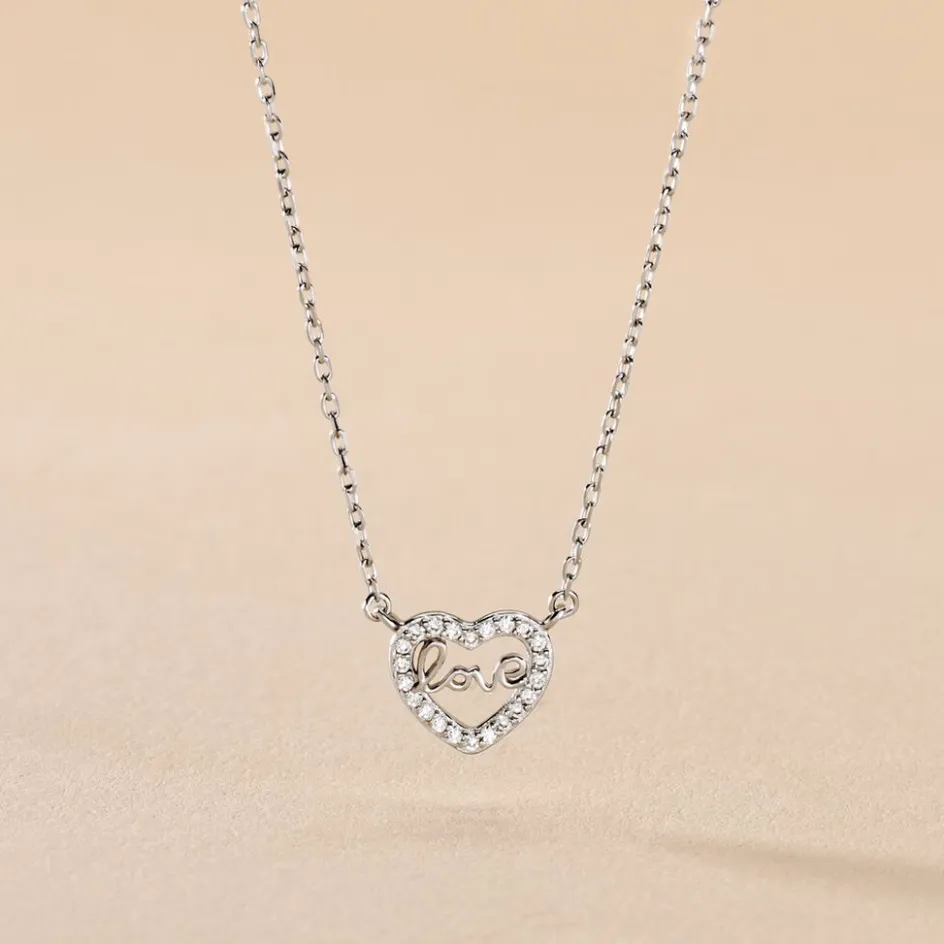 Collier Argent 925/1000 delicata Motif C艙ur Pave Oxydes De Zirconium + Ecriture Love 45cm