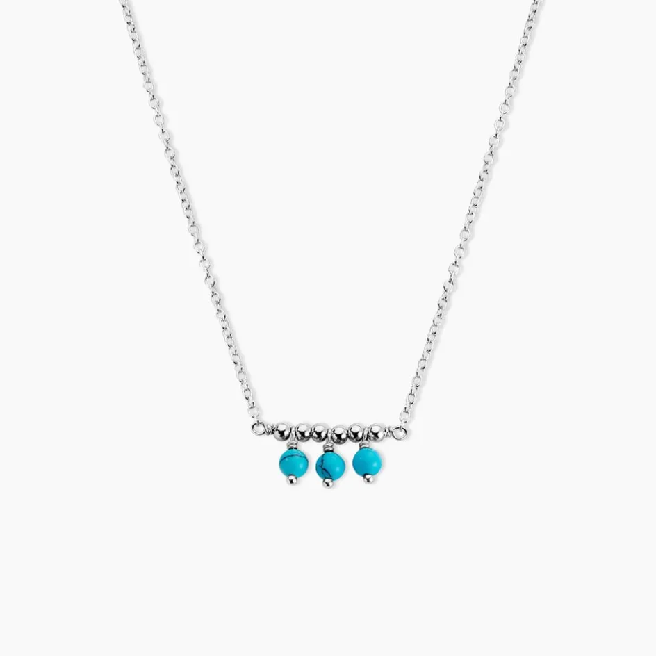 Collier Argent Blanc 925/1000 Boules Turquoise Maille Jaseron 42+3cm