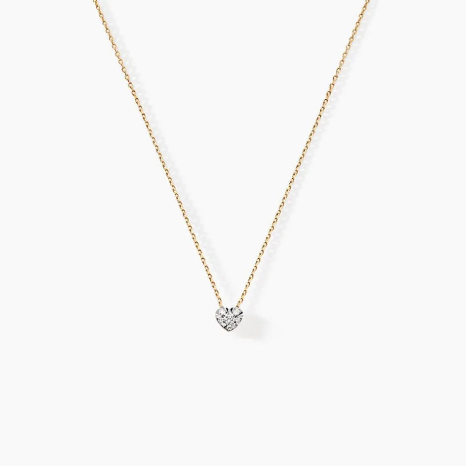 Collier Or Jaune 375/1000 C艙ur Multipierres 0.10cts Diamants Maille Forcat 40+2cm