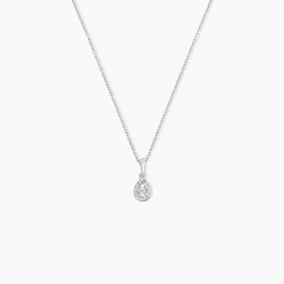 Collier Or Blanc 375/1000 Entourage Forme Poire Diamant 0.02cts 42cm