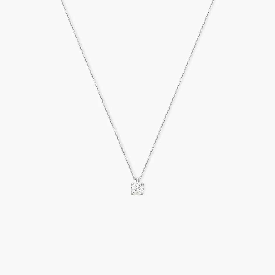 Collier Or Blanc 750/1000 Diamant 0.33cts Diamant Serti 4 Griffes Beliere Mobile Maille Forcat 40+2cm
