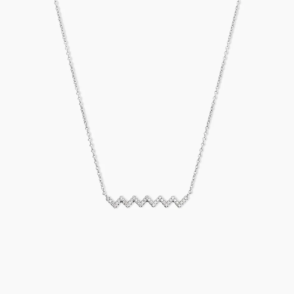 Collier Argent Blanc 925/1000 Zig Zag Pavage Oxydes De Zirconium Maille Jaseron 40+4cm